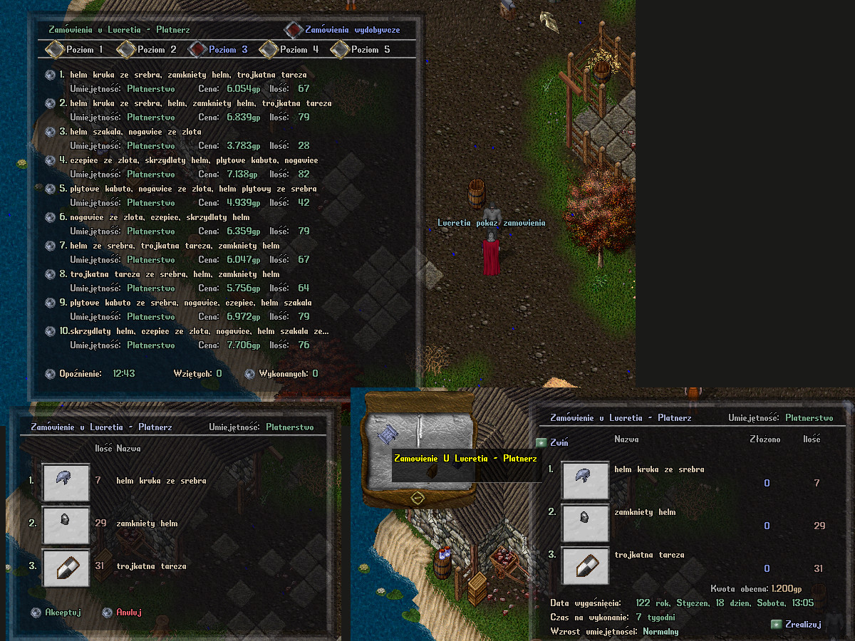 Na MW dostępny jest rozbudowany system zamówień. Dzielą się one na wydobywcze oraz rzemieślnicze. Zalecane jest wykonywanie zamówień rzemieślniczych od 1 poziomu w celu najlepszego wzrostu umiejętności. Same wykonywanie produktów nie daje tak dużego wzrostu. 1 poziom - do 40% 2 poziom - do 55% 3 poziom - do 65-70% 4 poziom - do 80-85% 5 poziom - od 85-90% Poziom zamówień w każdym rzemiośle został dostosowany do takiego przedziału. Warto też zwrócić uwagę na "Wzrost umiejętności" widoczny na bilecie. Nie każde zamówienie w szczególności u kucharza lub krawca jest najlepsze w celu wzrostu umiejętności. Może być dobre w celu zarobienia lub zwiększenia szansy na specjalne zamówienie, ale wzrost będzie np. niski. W celu wykonania zamówienia trzeba stworzyć określoną ilość przedmiotów, które zazwyczaj coś ważą. Możliwe jest wykonanie ich bezpośrednio w juce zwierzaka a następnie udanie się do kupca. Po użyciu przycisku "Zrealizuj", przedmioty zostaną pobrane z juki nawet jak koń będzie stał przed sklepem 15 kroków dalej. Po przekroczeniu 80% umiejętności rzemieślniczej zaczyna się szansa na Zamówienie specjalne. Do wykonania będzie losowy przedmiot, czasem wyjątkowej jakości. Nagrodą za te zamówienia jest szereg narzędzi runicznych, które mają specjalne właściwości. Lekkie, wytrwałe, szybkie. Jednakże słabe jeśli chodzi o wytwarzanie wyjątków.