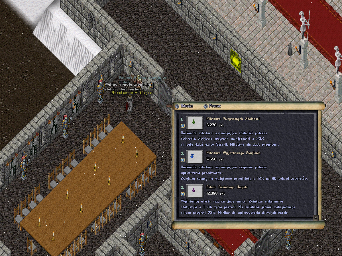 Wszystkie nagrody mają szczegółowy opis, tak jak widać na powyższym zrzucie. Warto nadmienić, iż jedynie za zasługi można otrzymać zwój na zwiększenie statystyk powyżej 100. Ponadto dostępne są dodatkowe nagrody oraz przedmioty, które rajcy mogą udostępnić dla najbardziej zasłużonych krainom Brytanii.